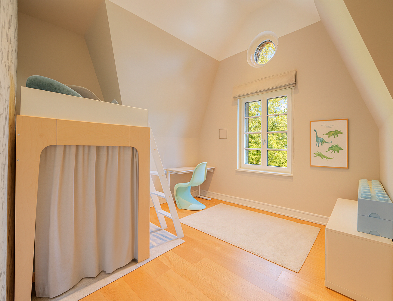 Das ca. 880 m² große Grundstück bietet eine optimale Sonneneinstrahlung über den gesamten Tagesverlauf und schafft so lichtdurchflutete Räume und ein besonderes Wohnambiente. Der separate Au-pair- und Gästebereich mit eigenem Eingang unterstreicht den exklusiven Charakter des Hauses und bietet zusätzliche Flexibilität.