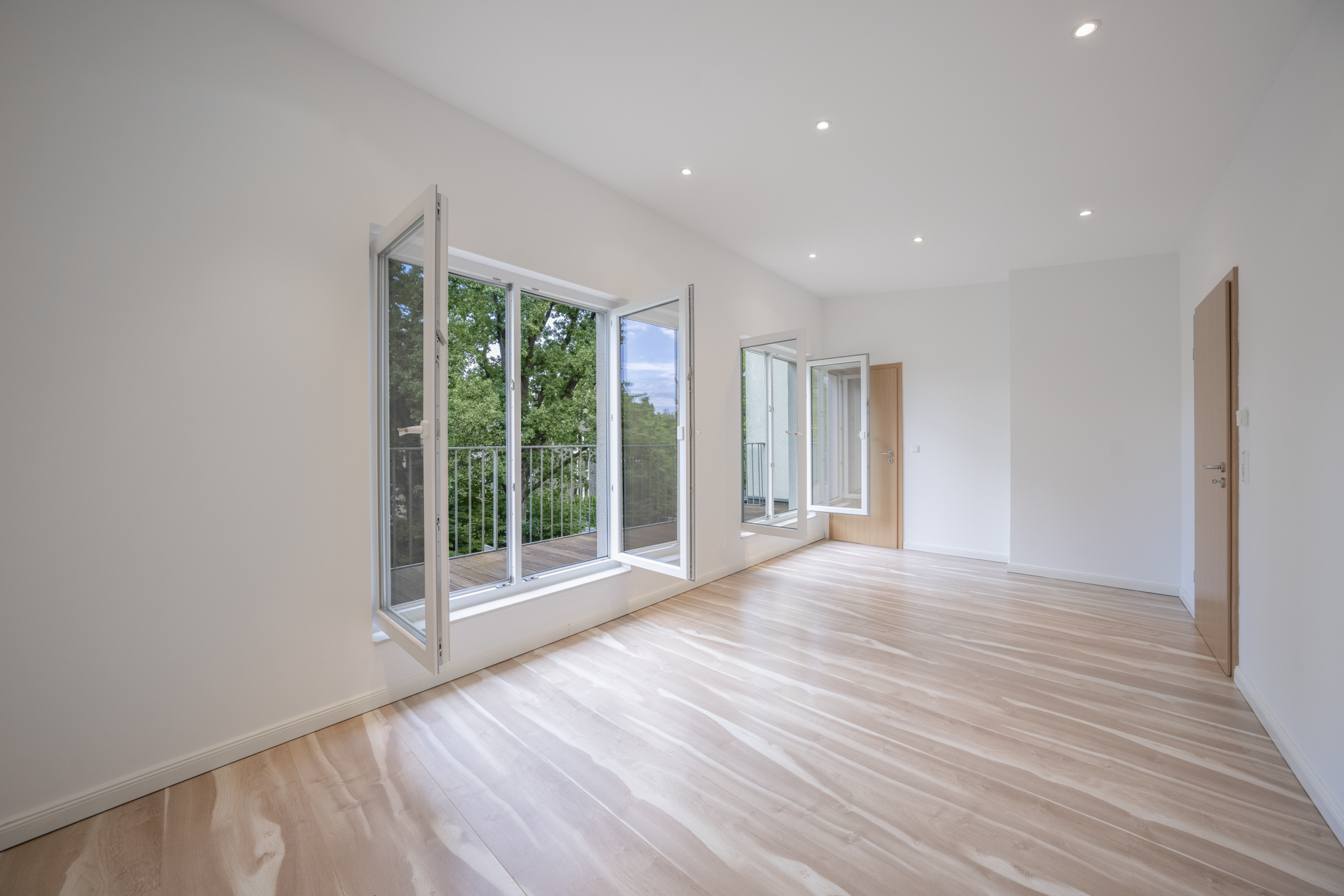 Vom Wohnbereich aus gelangen Sie direkt in den sonnigen Garten – perfekt zum Spielen, Gärtnern oder einfach zum Entspannen. Ein Gäste-WC sowie ein kleiner Abstellraum runden das Raumangebot im Erdgeschoss ab. Im ersten Obergeschoss geht es weiter mit zwei Schlafzimmern und einem Vollbad. Eines der beiden Schlafzimmer überzeugt durch seine Größe und den begehbaren Kleiderschrank. Ganz oben im Dachgeschoss wird es noch einmal besonders: Hier erwarten Sie zwei weitere Schlafzimmer, eines davon mit Zugang zu der Dachterrasse in Südausrichtung. Zudem gibt es auf dieser Etage ein weiteres Bad und einen Technik- und Abstellraum mit Wärmepumpe und Waschmaschinenanschluss.