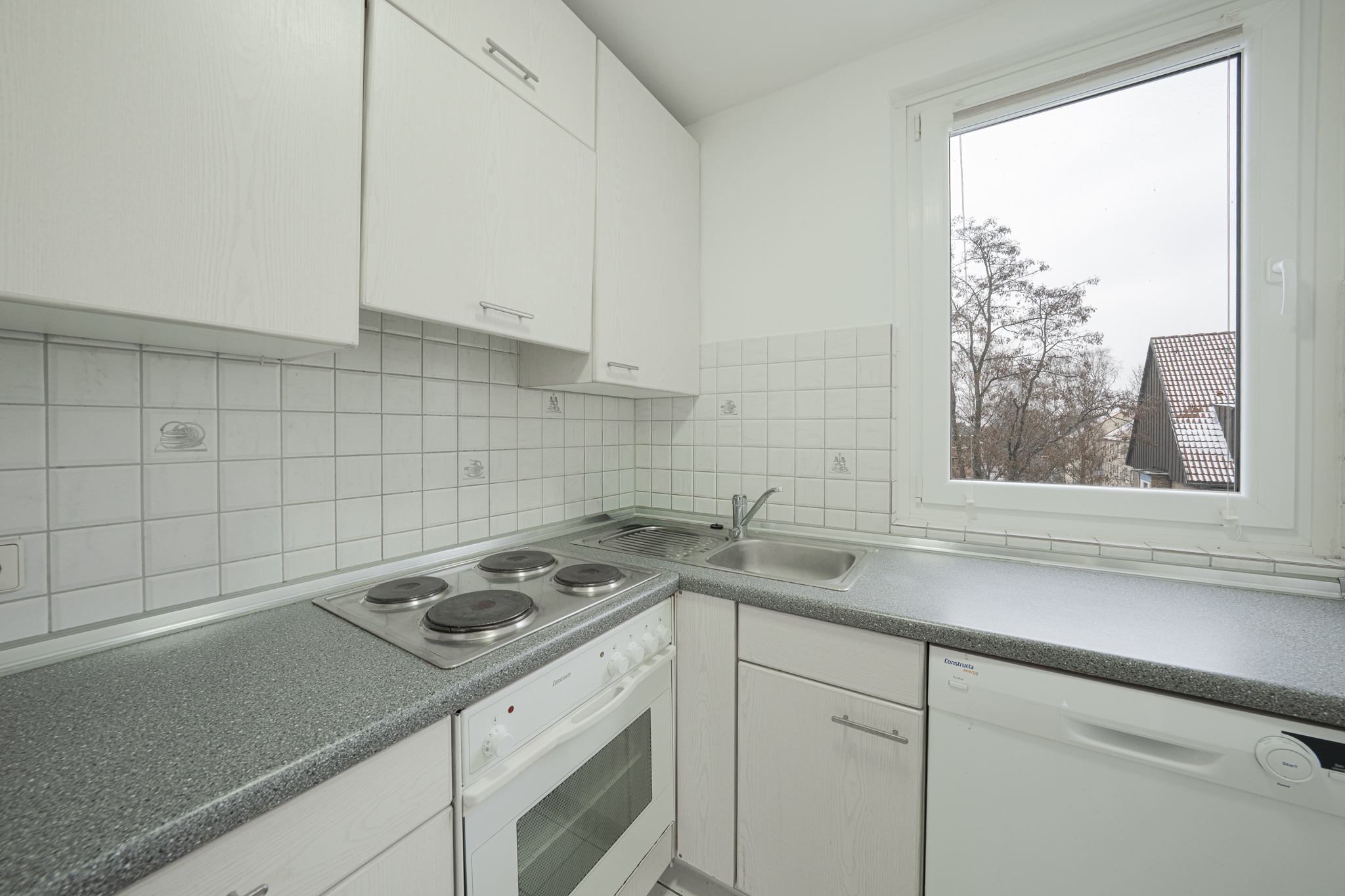 Die separate Küche ist funktional geschnitten und bietet ausreichend Platz für den täglichen Bedarf. Das Tageslichtbad ist komfortabel ausgestattet mit Badewanne und separater Dusche – ein seltenes Ausstattungsmerkmal in dieser Größenordnung. Ein praktischer Abstellraum innerhalb der Wohnung sowie ein eigener Kellerraum sorgen für zusätzlichen Stauraum.