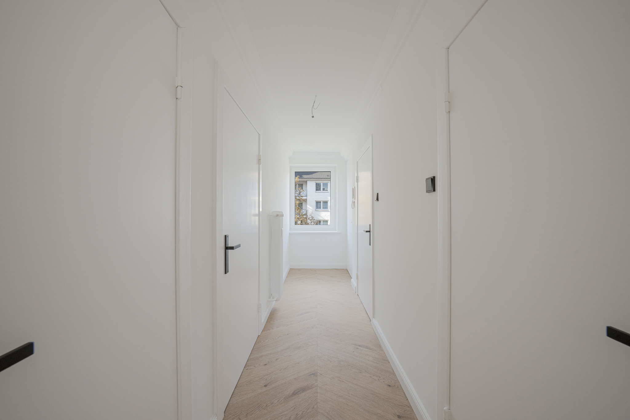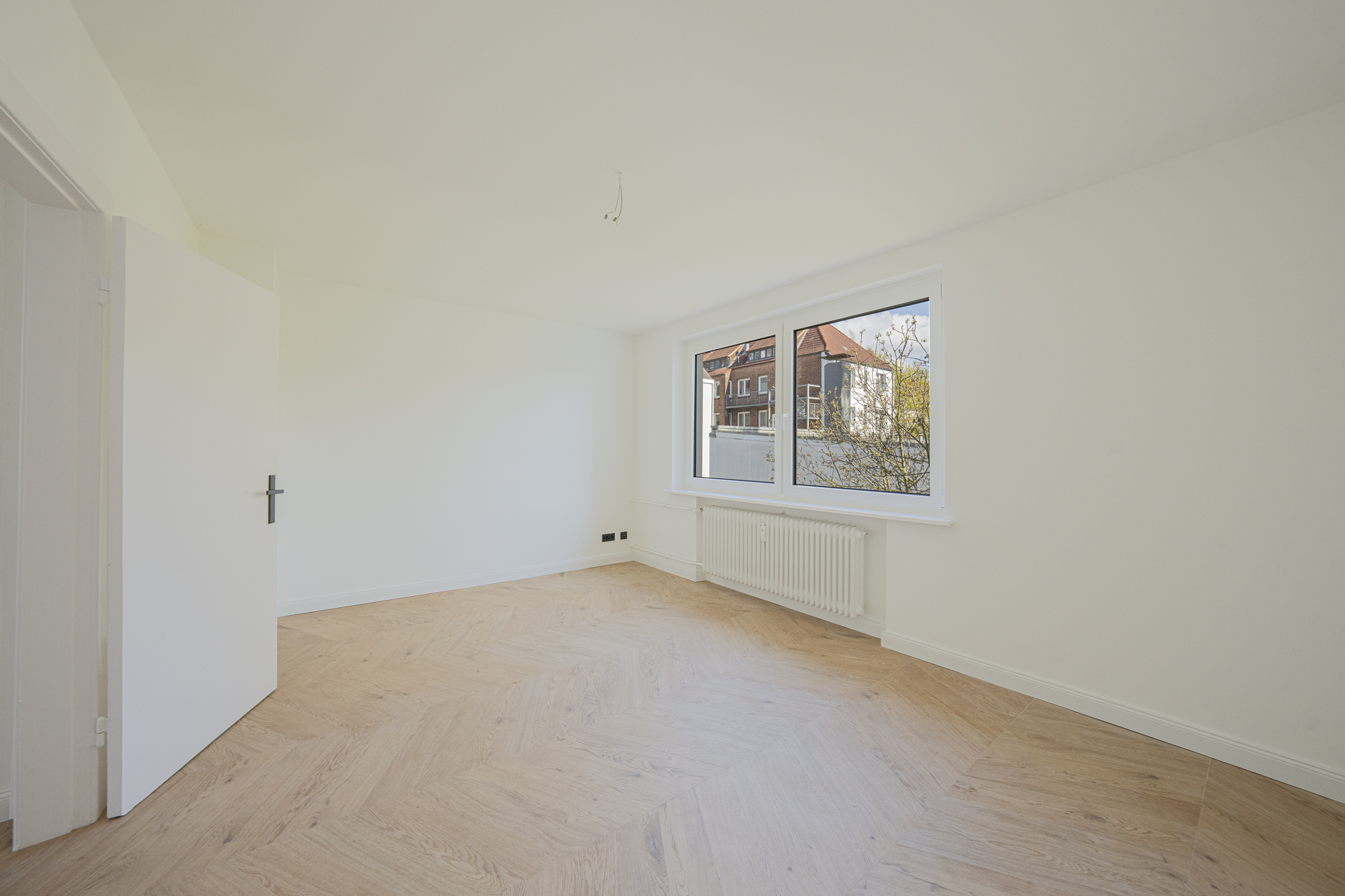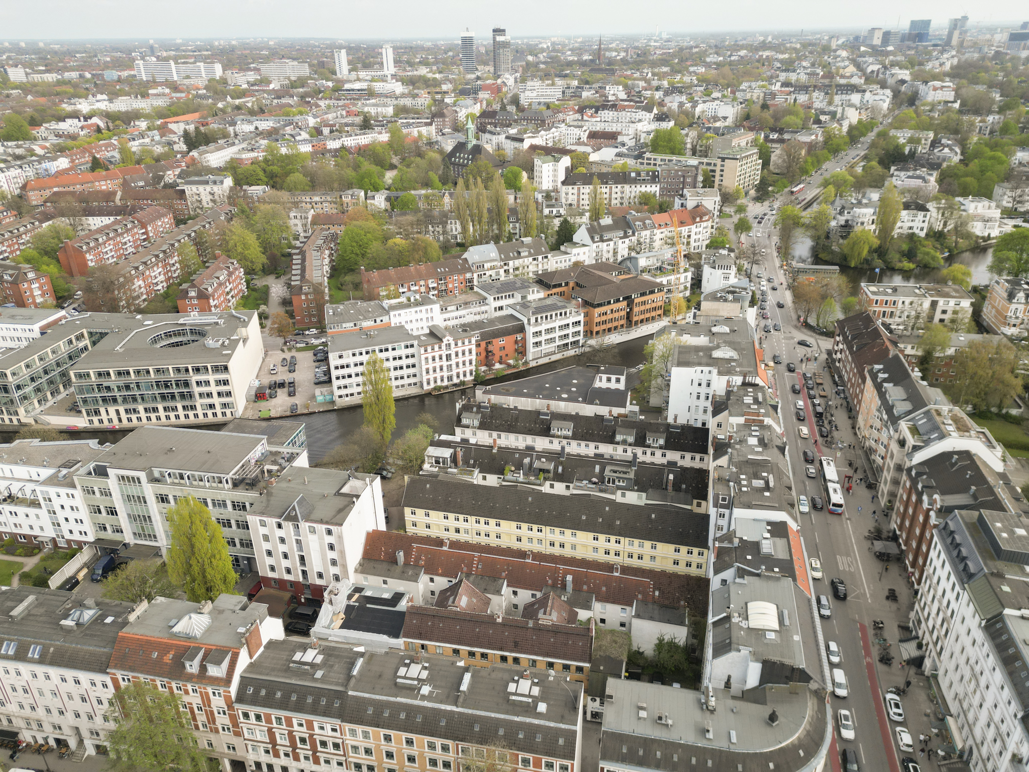 Diese im Zuge einer umfassenden Kernsanierung modernisierte 1,5-Zimmer-Wohnung bietet auf rund 38 m² eine funktional durchdachte Wohnlösung in gefragter Lage von Hamburg-Winterhude, unweit des Mühlenkamps. Bereits beim Betreten der Wohnung fällt die effizient gestaltete Küche auf. Trotz kompakter Größe verfügt sie über eine vollständige Ausstattung und ein Fenster zur natürlichen Belüftung. Die Küche wurde im Rahmen der Sanierung erneuert und fügt sich stimmig in das Gesamtkonzept der Wohnung ein. Der Schlafbereich ist sinnvoll in den Grundriss integriert und mit einem maßgefertigten Einbauschrank ausgestattet, der zusätzlichen Stauraum schafft und eine optimale Flächennutzung ermöglicht. Das innenliegende Duschbad ist hell gestaltet und verfügt über zeitlose Fliesen sowie moderne Sanitärobjekte, wodurch ein gepflegter Gesamteindruck entsteht. Der Wohnbereich mit Ausrichtung zum ruhigen Innenhof bietet angenehme Rückzugsmöglichkeiten und lässt sich flexibel möblieren. Die Wohnung überzeugt insgesamt durch eine hochwertige Ausstattungsqualität, unter anderem mit Fischgrätboden und glatt verputzten Wänden.